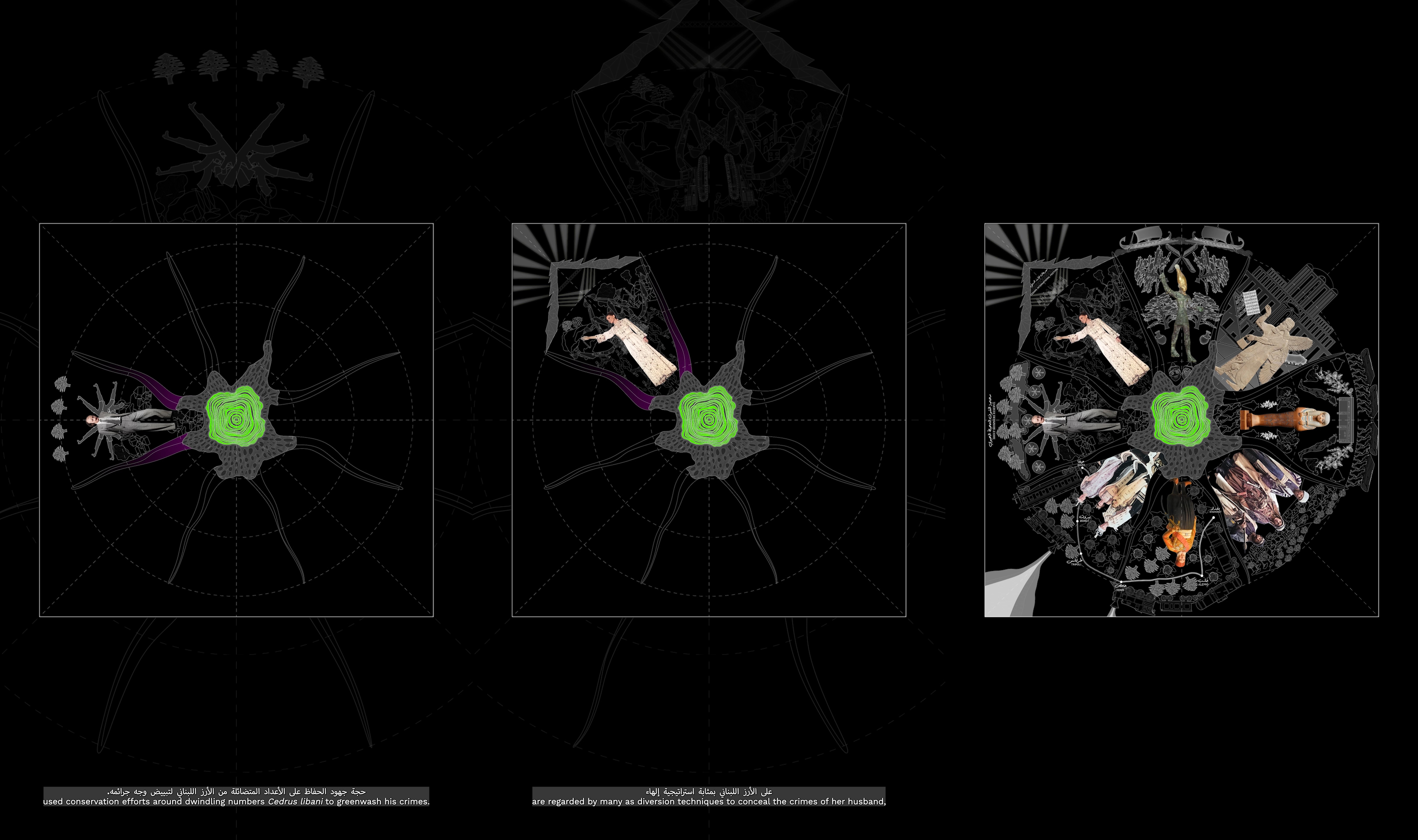 The Lebanese Cedar’s exploitation did not end with the departure of colonial powers. In the aftermath of the Lebanese Civil War, the tree became a tool for greenwashing political and humanitarian crimes . Walid Jumblatt, a prominent Druze politician and warlord, monopolized control over the Shouf Cedar Forest, founding the Shouf Biosphere under the guise of ecological conservation. While the preserve is one of Lebanon’s largest nature reserves, its establishment was riddled with contradictions. Landmines were planted around the Cedars to restrict access, transforming conservation efforts into a mechanism of isolation and military control. Similarly, far-right Christian politician Sethrida Geagea proclaimed herself the protector of the Cedars of God Forest. Her conservation efforts, however, were widely criticized as attempts to obscure the crimes of her husband, Samir Geagea, against Lebanese and Palestinian civilians. These actions were selective, favoring Christian communities while marginalizing others. In one of the most egregious examples of exploitation, Geagea ordered the flattening of a hill within the Cedars of God Forest to construct a stage for the Cedars International Festival, a music event themed around the tree. This destruction left the landscape barren, incapable of hosting Cedars or other plant species.